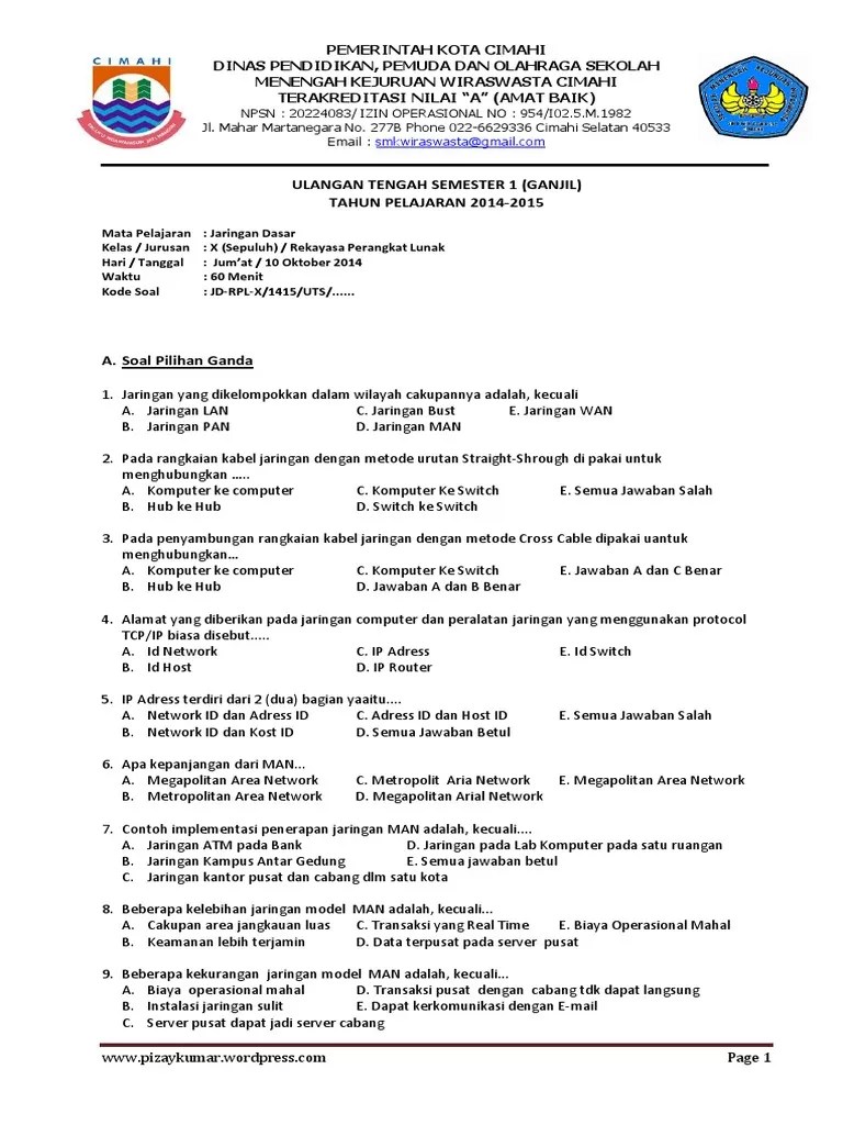 Soal Tentang Ip Address Dan Jawabannya - Latihan Soal Dan Jawaban Pat Aij Docx Docx 1 Ip Address Terdiri Dari Dua Bagian Yaitu U2026 A Net Id Dan Geteway B Link Id Dan Host Id C Network Id Dan Course Hero : Dari contoh ip address yang kalian tulis, tenetukan yang termasuk network id dan host id!. Teknik mengerjakan soal yang berhubungan dengan kesalahan setting jaringan adalah kita harus menganalisa alamat ip, gateway dan netmasknya apakah sudah bener. soal tentang ip address ipv6 1. Network id menentukan alamat dalam jaringan network address sedangkan host id menentukan alamat dari peralatan jaringan yang sifatnya unik untuk membedakan antara satu mesin dengan. Guru sd smp sma contoh soal microsoft office beserta jawabannya contoh file soal uts lengkap kelas 1 6 sdmi semua mata pelajaran 20162017 berikut ini adalah kumpulan dari berbagi sumber tentang contoh soal. soal yang akan saya sajikan kali ini berupa 25 pilihan ganda dan 7 essay.