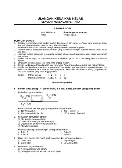 Soal Ipa Kls 8 Ukk / Soal Pat Ukk Ipa Kelas 8 Smp Mts Foursobang - Pilihan ganda berilah tanda silang (x) pada jawaban yang paling tepat!